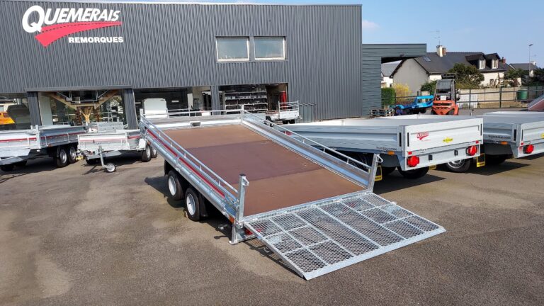 Remorque Plateau Basculant Hydraulique Roues Extérieures 4.50 m x 1.90 Ptac 3500 Kg QUEMERAIS