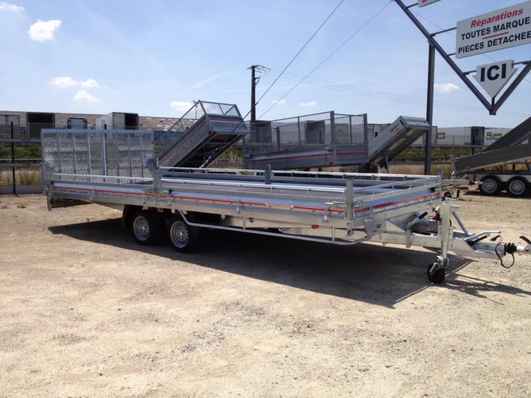 Parfaites pour le transport et le déchargement facile de matériaux, ces remorques disposent d’un système de basculement hydraulique. Gain de temps et d’effort sur chantier. Disponibles en version un ou deux essieux selon la charge. Une solution puissante pour les professionnels du BTP et de l’aménagement.