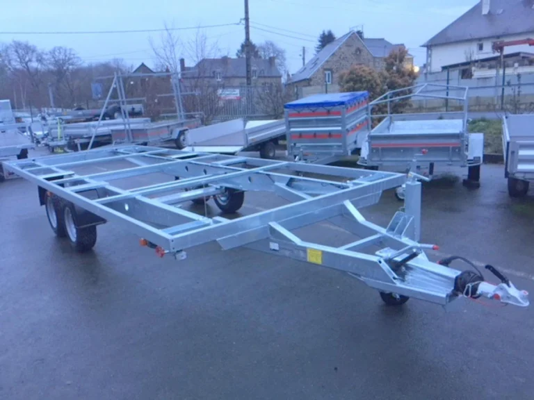Remorque 3.50 x 1.87 REMORQUE ABAISSABLE RAS DU SOL FAIBLE PENTE PTAC 3500 KG QUEMERAIS
