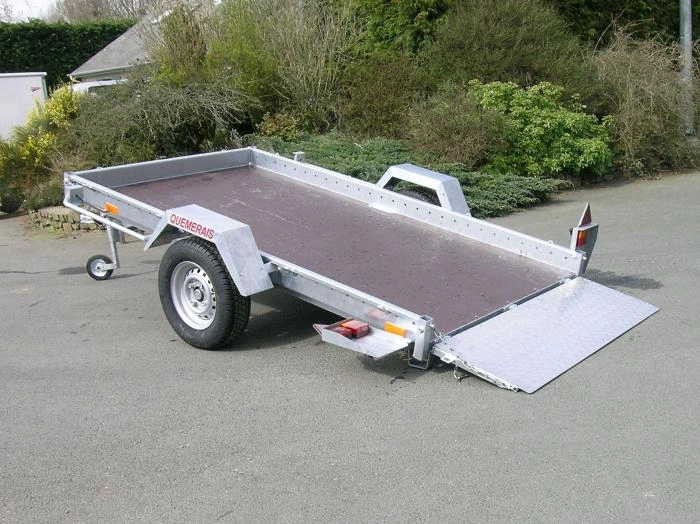 Remorque porte moto, plateau tondeuse, quad. . . fixe avec rampes sous glissières ou basculante manuelle avec arrière pont homologation possible 750-900-1000 kg