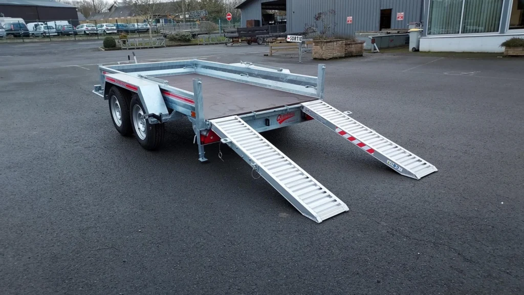 Remorque porte engin avec rampes quemerais 3 x 1.50 ptac 2700 kg