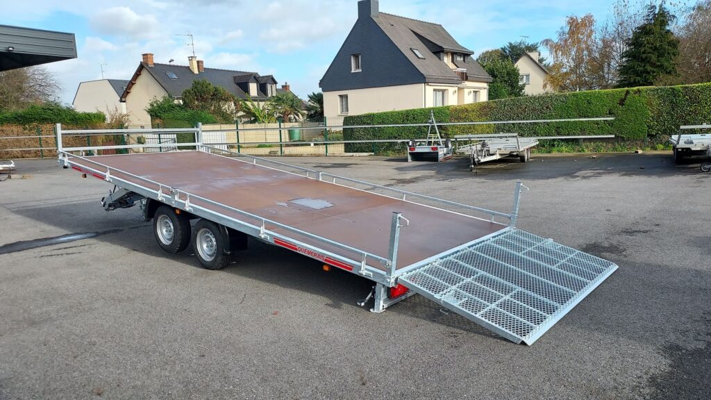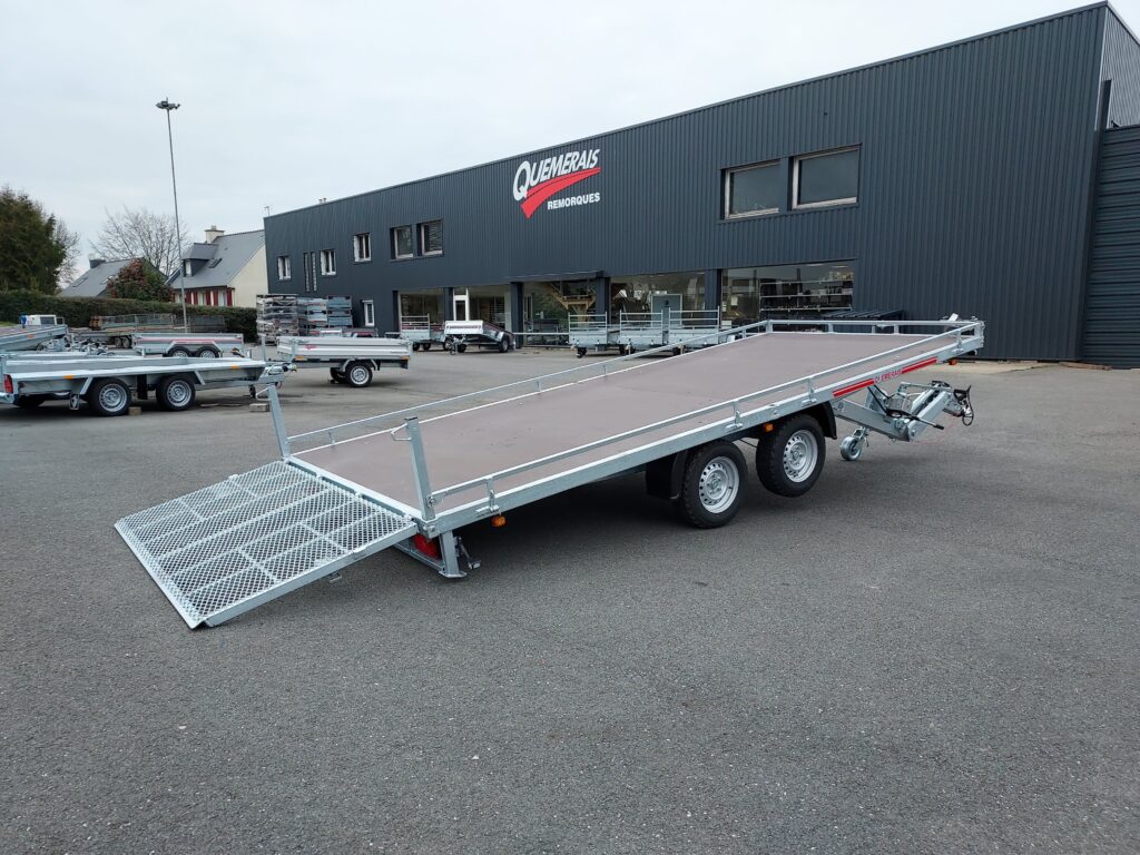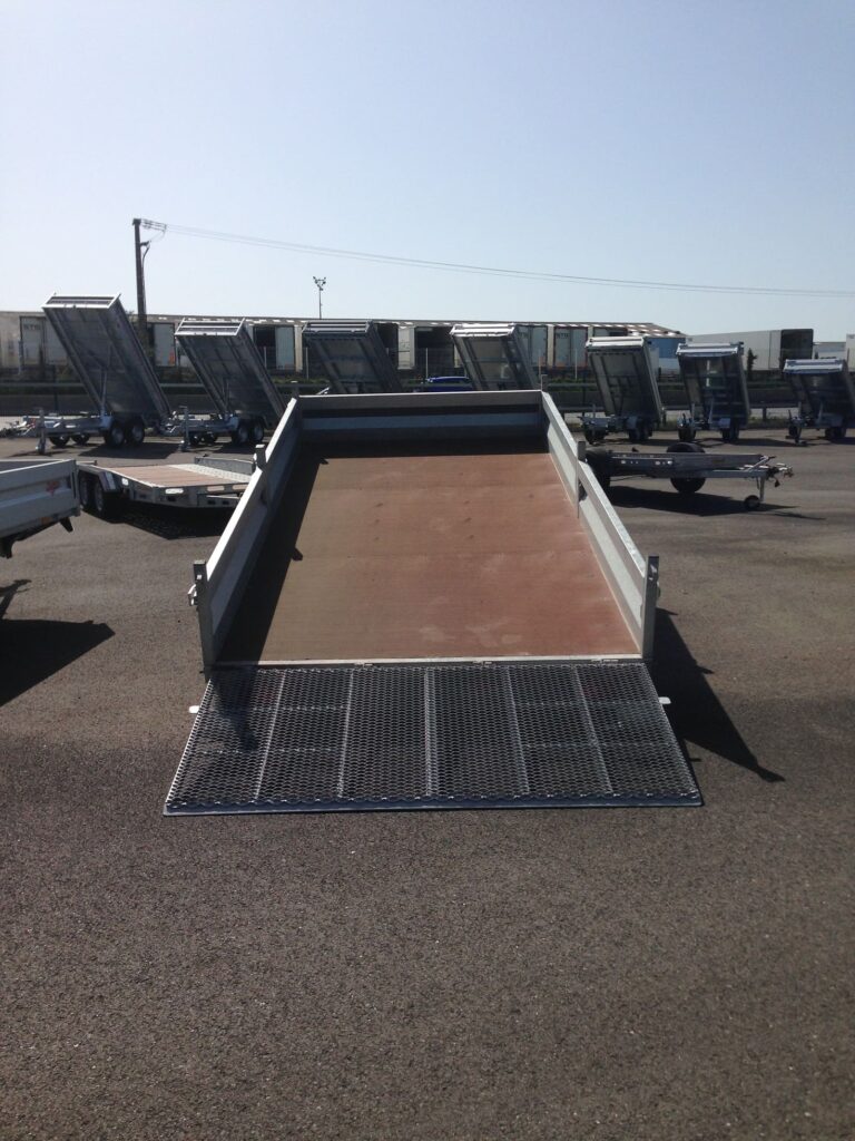Ce plateau est équipé d’une pompe manuelle et d’un arrière pont métal déployé-2 Essieux Alko-Excellent Plancher bakélisé bouleau finlandais- Nos chassis sont renforcés mécano soudés dans nos ateliers et galvanisés à chaud par trempage