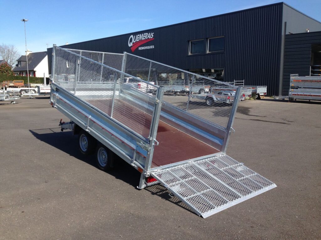 Remorque 3.50 m x 2.00 m Plateau basculant hydraulique 2 essieux PTAC 1000-1200-1300-1400-1500-1600 Kg QUEMERAIS