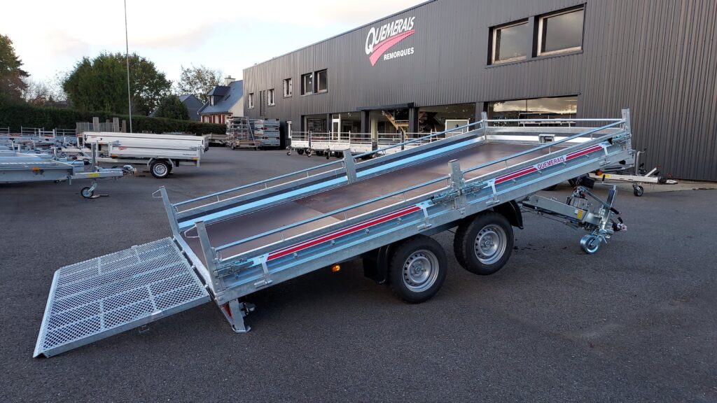 Remorque 4.20 x 2.10 Plateau basculant hydraulique Ptac 1600 Kg QUEMERAIS