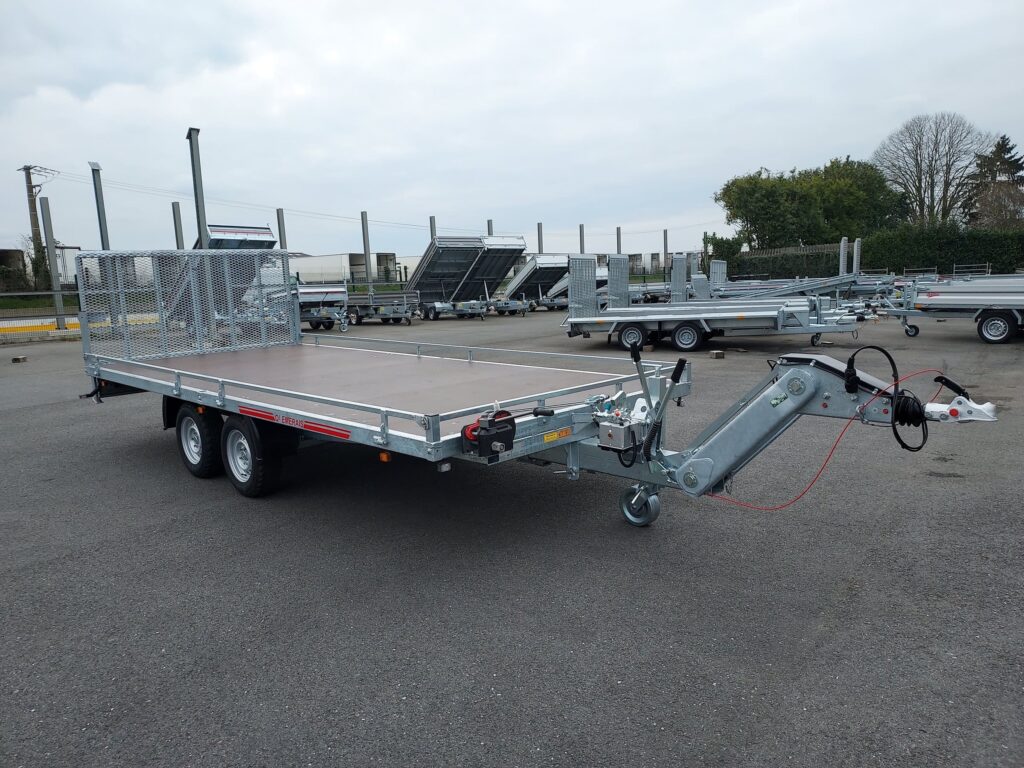 Ce plateau est équipé d’une pompe manuelle et d’un arrière pont métal déployé-2 Essieux Alko-Excellent Plancher bakélisé bouleau finlandais- Nos chassis sont renforcés mécano soudés dans nos ateliers et galvanisés à chaud par trempage