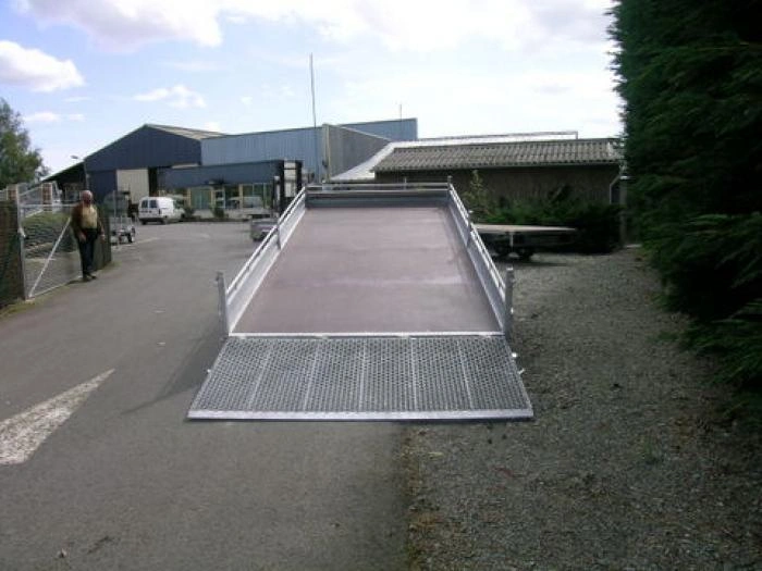 Plateau avec ou sans ridelle basculant hydraulique avec pompe manuelle robuste arrière pont métal déployé